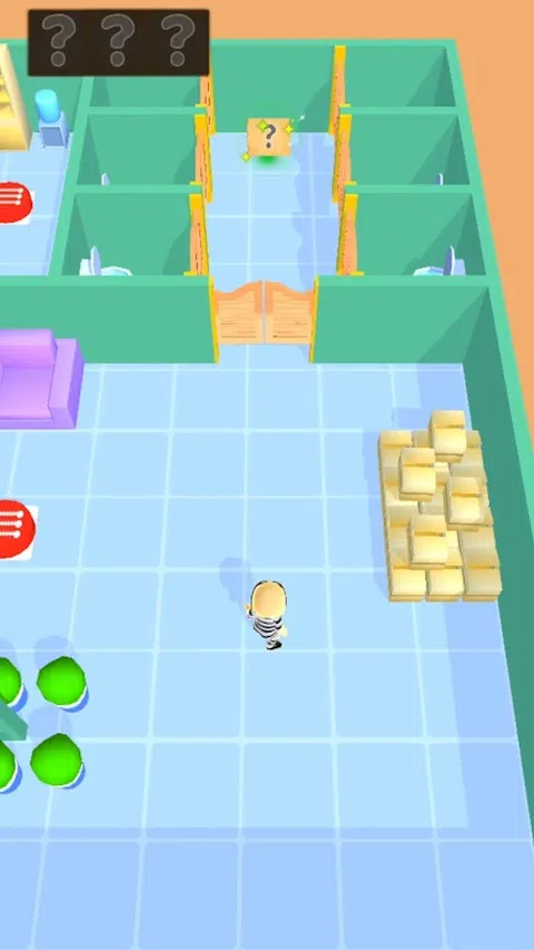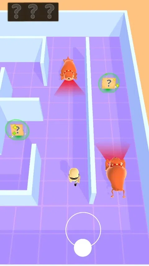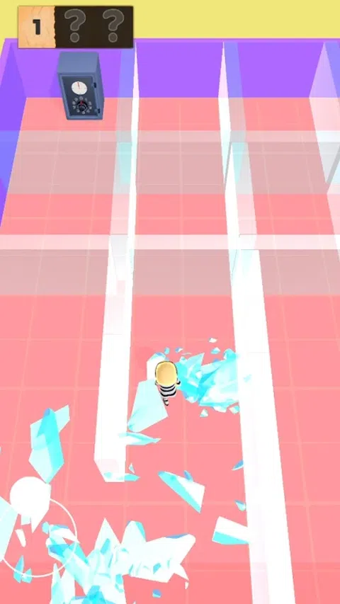收集密码碎片。 远离狗的红色区域,从后面打它们。 蓝色按钮打开蓝色门,红色按钮打开红色门。 找到正确的路径并赢得保险箱中的黄金