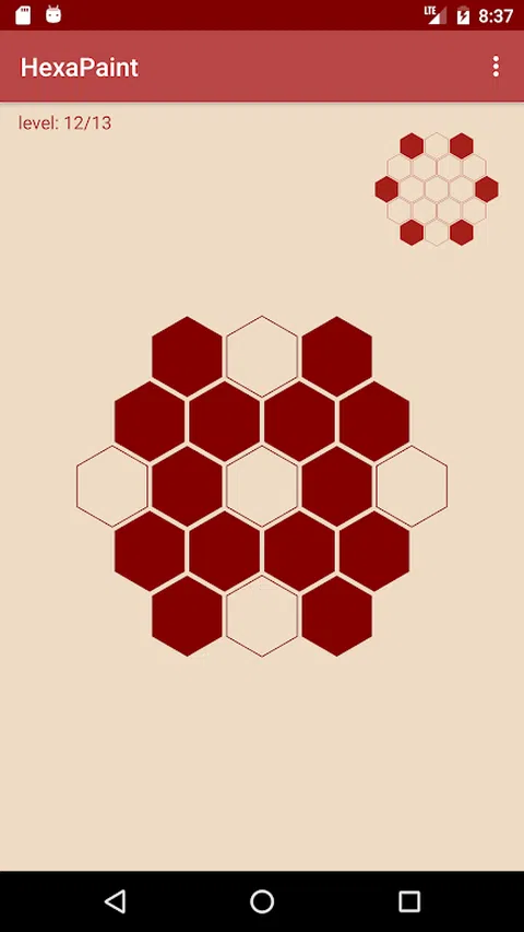 游戏的目的是追踪小的图形图像。此处只能使用红色字段。如果单击红色字段,该字段及其所有相邻字段都会更改颜色。白场变成红场,红场变成白场。比赛场地总是由六边形元素组成,其场地宽度随着时间的推移而增加。 HexaPaint 可以选择以两种模式播放。在“战役”模式下,共有 202 个不同级别可用。对于“免费游戏”,字段大小几乎可以任意选择(此处的大小为:25)。有了这个,您可以根据 HexaPaint 的规则创建自己的图形和自己想象的图案