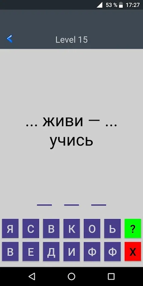 该应用程序包含的短语,每个缺少一个词。玩家有机会猜什么字
