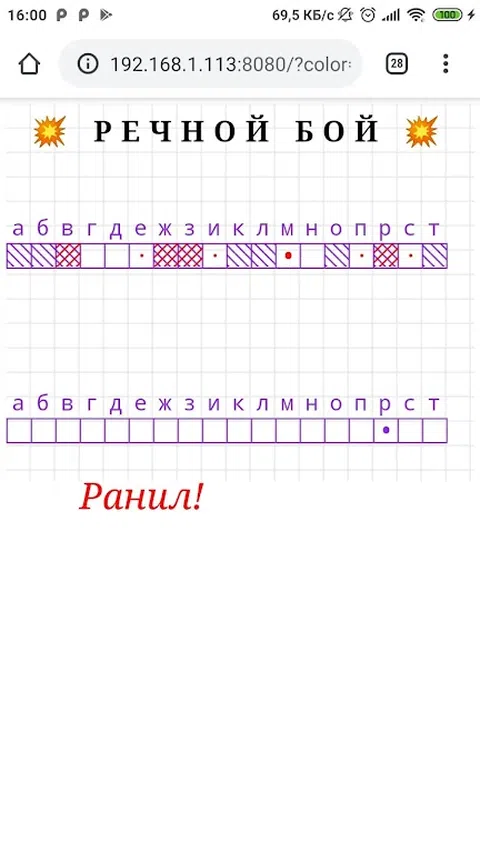 就像海战一样,只有一个维度。 您可以与位于同一Wi-Fi网络中的漫游器或实时对手竞争。 游戏不使用互联网。游戏仅在局域网上传输数据(仅当与人玩耍时)。 要播放,您必须安装任何浏览器。游戏将在默认浏览器中启动