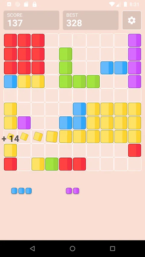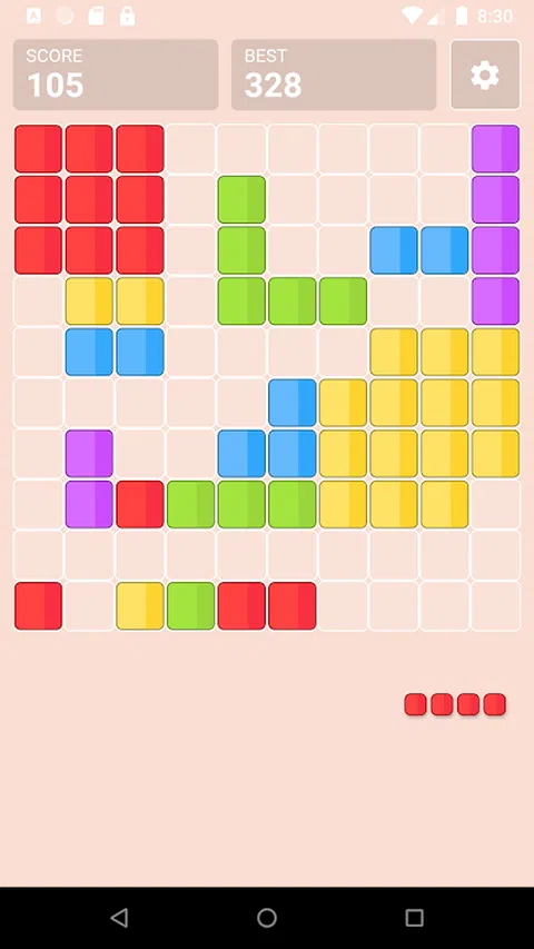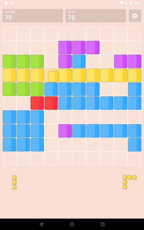 水平和垂直填充方块以将其移除。 如果没有空间放置方块,则游戏结束 怎么玩? 1.只需拖动方块即可移动它们。 2.尝试在网格上垂直或水平地创建实线。 3.方块无法旋转。 4.没有时间限制