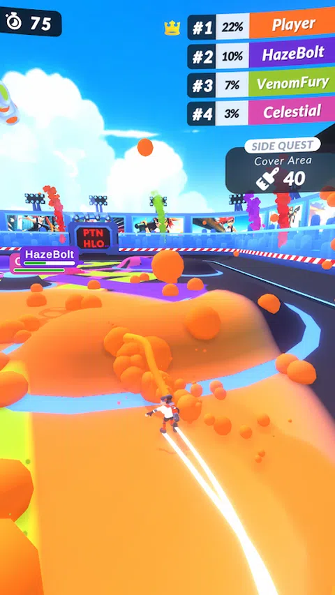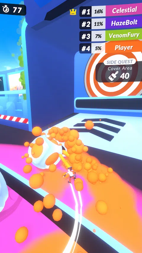 动态运动:穿越竞技场,用你的颜色粉刷地面,努力超越竞争对手。 球和球门:将球直接推向球门,并在您的阴凉处获得更多的竞技场。 坡道和跳跃:为游戏添加转折!使用坡道跳跃并战略性地定位自己。 多人模式:与朋友和全球玩家竞争,展示你的战略实力。 新关卡:处处都有新鲜的竞技场和挑战等待着你。 不要错过在竞技场上称霸的机会!立即下载游戏,开始你的征服