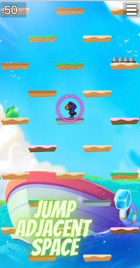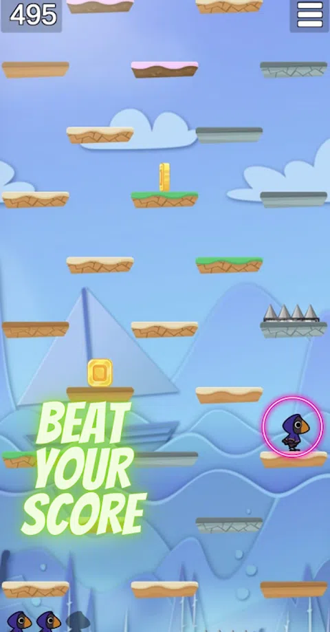 跳跃大师 跳跃大师是一款具有挑战性和令人上瘾的游戏,将测试您的跳跃和眼睛协调能力。 您必须引导鸟在相邻的空间上跳跃,在不跳上尖刺的情况下不断上升