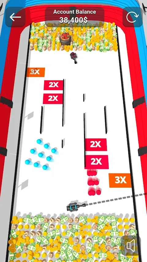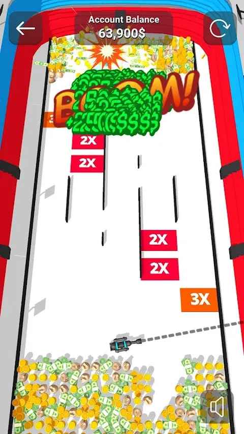 你和你的对手在他们的大炮后面有一排硬币和钞票。如果您向对手的一堆钱射击,这些钱就会添加到您的帐户中。谁先没钱,谁就输了
