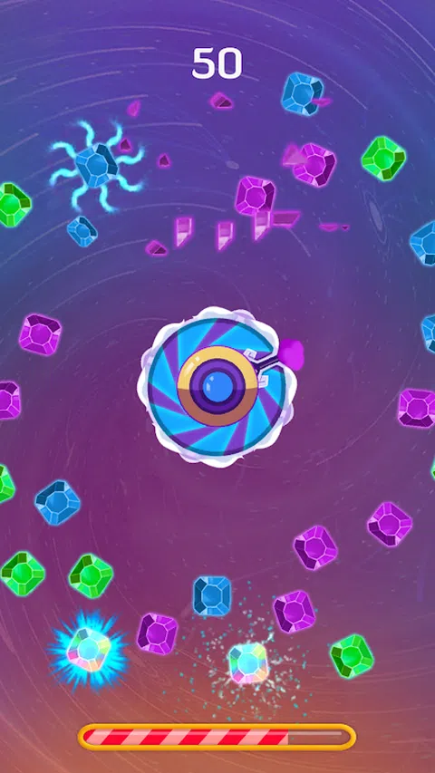 喷洒水滴并粉碎晶体。不要让晶体填满您的屏幕。水滴将沿转盘的切线方向飞行,并尝试获得最高分