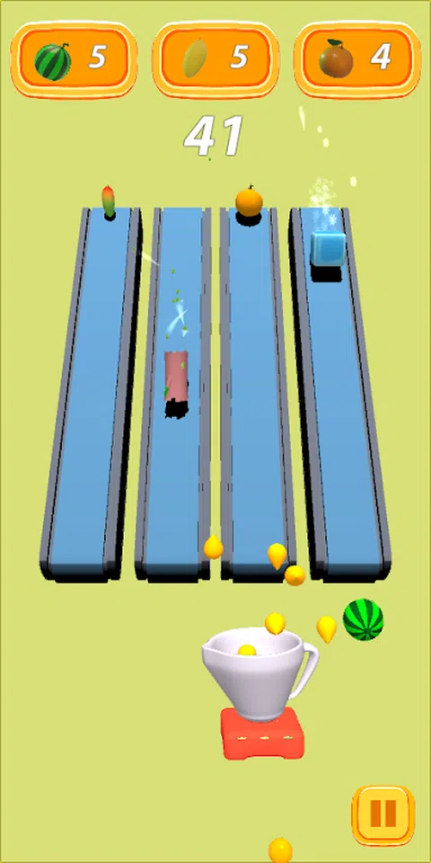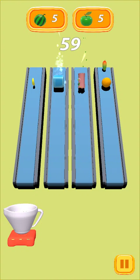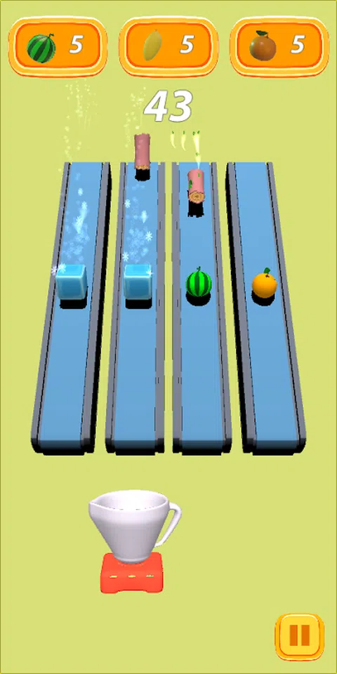 你必须抓住水果,躲避危险的原木和冰块