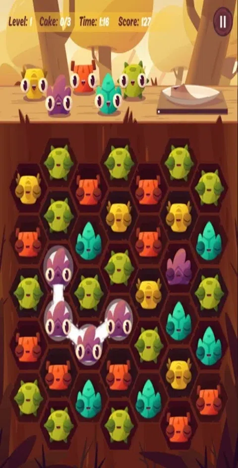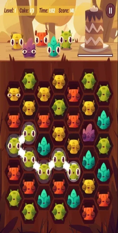 小怪物饿了,他们想要蛋糕!匹配3个或更多相同颜色的怪物,看着它们大口大口地咀嚼蛋糕。 快点,在时间用完之前。你能进步多远? 特点: 8种美味的蛋糕 - 巧克力,果冻,布丁,水果蛋糕等等! 10个可爱的怪物 - 他们每个人都非常饿 互动教程。在几秒钟内了解如何玩。 有趣的主题和调皮的背景音乐 无限游戏 创新的六边形网格。匹配相邻的怪物,并创建长链