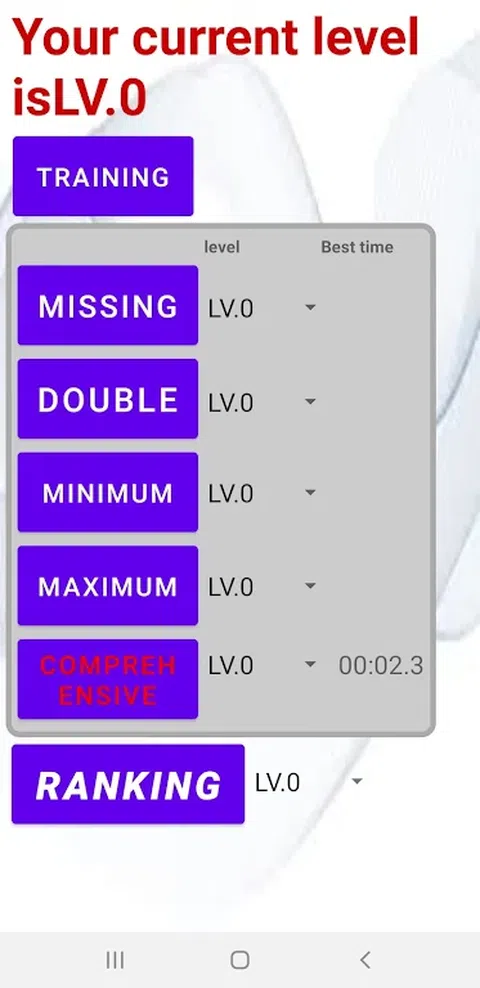 它从一个简单的低级别游戏开始,随着级别的提高而变得越来越难。 但是,不需要复杂的计算或内存。 只需猜测缺失的数字、重复的数字、最大的数字、最小的数字。 当您多次挑战游戏时,您将能够通过增加视野和数字的瞬时力量来增强您的思想。 此外,您可以根据通关时间对“智能”进行排名。 一旦你习惯了游戏,尝试一个综合游戏,并与其他人竞争“聪明”。 我敢肯定,世界上那些了不起的天才正在创造威胁性的记录。 通过在这个游戏中练习,你的数字智能排名会上升。 享受各种活动,例如激活大脑、预防痴呆症、改善数字思维和消磨时间