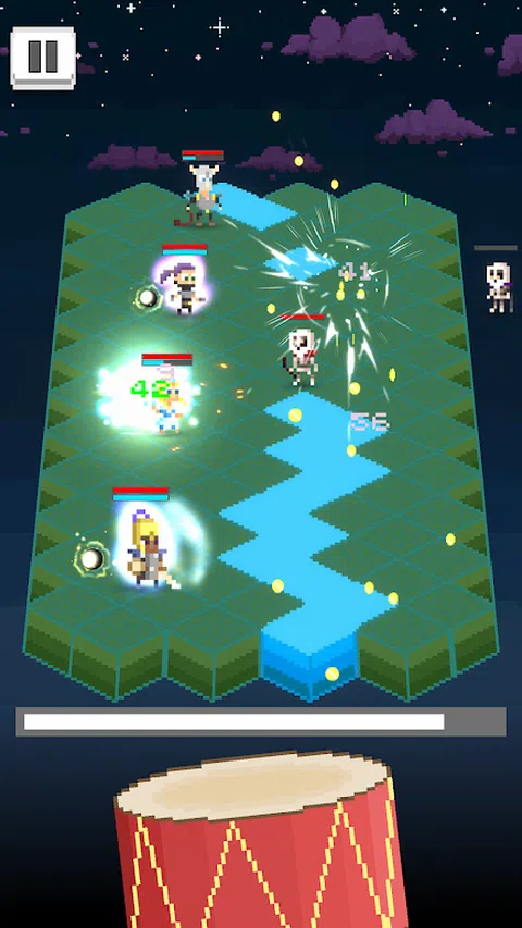战鼓很容易玩。您只需点击屏幕底部的鼓,您的英雄就会立即行动并开始与敌人作战。最终,您将完成关卡以前进到新的土地。在你的旅程中,你将击败首领,收集物品,解锁新的可玩角色,并在这个奇幻冒险的故事中取得进展