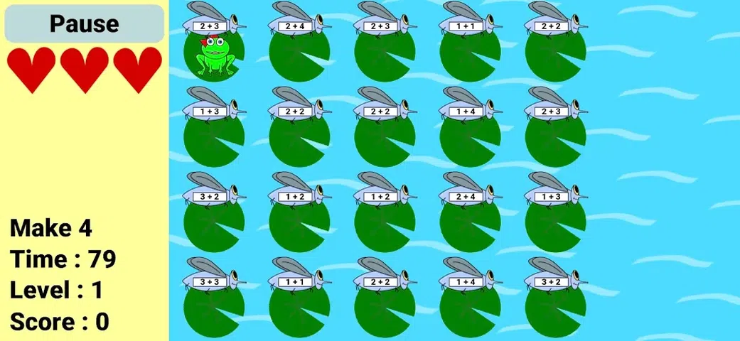 免费的教育性数学游戏!吃苍蝇,避开可怕的咀嚼者,并选择正确的数字来获胜! 玩得开心 你扮演莉莉,一只饥饿的青蛙。点击以穿越每个关卡,再次点击以吞下对关卡数学问题有正确答案的苍蝇,即可得分。但是要小心 - 如果你吃了不正确的苍蝇或被漫游的鳄鱼抓住,你会失去一些健康