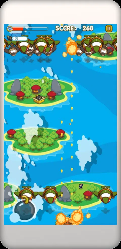 射击 - Skywar 是一款迷人而美丽的游戏,您必须在其中营救人们, 炸弹和各种改进,摧毁敌方飞机和战斗机
