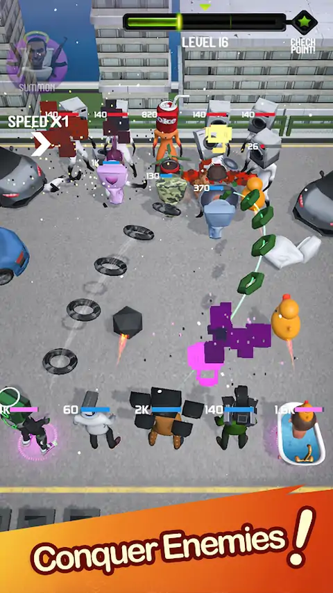 收集所有可怕的怪物。将您所有的小队放入您的收藏中,并成为合并大师。组合起来,使这个免费的厕所游戏成为最强大的军队怪物