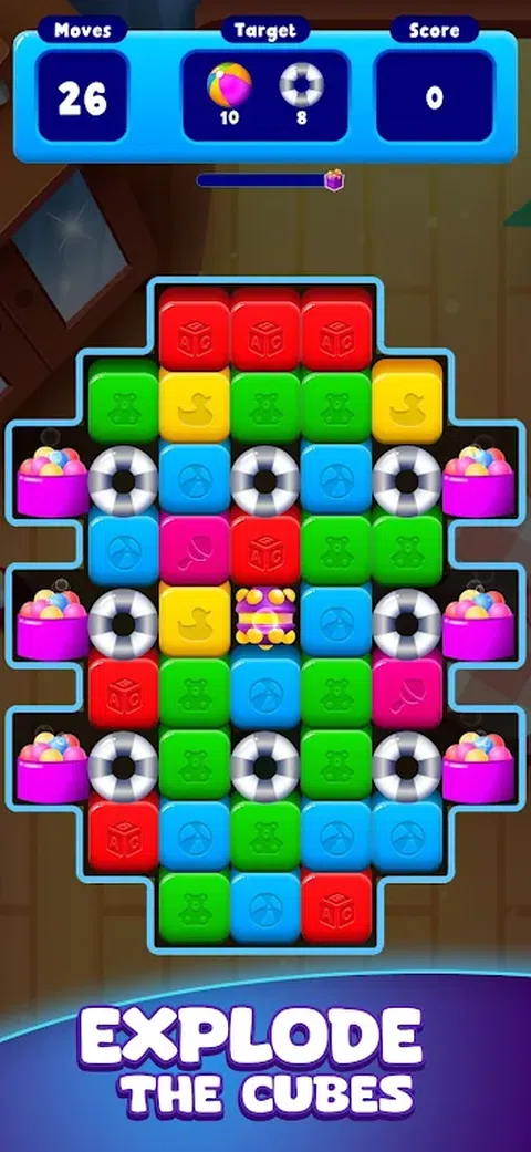 欢迎来到 Toy Match - Cube Blast Puzzle! 准备好踏上丰富多彩且令人上瘾的解谜冒险,这将吸引您的感官。沉浸在“Pop Block”的世界中,在那里您的拼图解决技巧将受到终极考验。 - 游戏玩法 - 在这个令人兴奋的三连消益智游戏中,您的目标简单而具有挑战性:粉碎并弹出玩具立方体以清除每个级别。机制很容易掌握 - 只需点击即可粉碎立方体。爆炸 2 个或更多相邻的相同颜色的方块,创造令人满意的连锁反应。但是,当您粉碎五个或更多相同颜色的方块时,真正的兴奋就来了,释放出可以重塑整个游戏面板的特殊炸弹的力量! - 助推器和挑战 - 准备迎接令人费解的谜题挑战,这些谜题将测试您的逻辑和策略。但是不要害怕!有了可供选择的助推器,您甚至可以克服挑战。明智地使用这些助推器来穿越关卡,收集所需的物体,并征服等待的大爆炸冒险。 - 有限的动作,最大的刺激 - 在 Toy Match 中,每一步都很重要。您完成每个级别的移动次数有限,为游戏玩法添加了额外的策略层。仔细计划您的移动,以充分利用您的机会,在收集所有要求的物品之前不要让移动用完。您的成功之旅取决于您制定战略和适应的能力! 立即下载 Toy Match - Cube Blast Puzzle 并体验: - 引人入胜的匹配 3 游戏,具有独特的转折 - 多彩而充满活力的图形,将愉悦您的感官 - 刺激的助推器,帮助你克服挑战 - 具有挑战性的谜题,让你不断回来寻找更多 - 立方体爆破乐趣的身临其境的世界