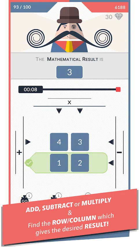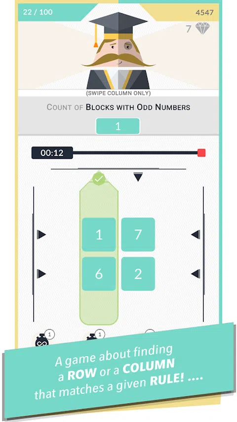 我们给你一个网格,我们给你一个疯狂的规则,我们给你一些价值观。您所要做的就是仔细查看网格并找到哪行或哪列具有给定规则的值。随心所欲。然后你只需要再做99次。 所以,锻炼你的大脑,提高你的视力,提高你的反应能力,将所有这些结合起来,快速扫描不同方向的网格,在时间用完之前找到正确的答案! 尝试一款具有独特游戏玩法的游戏,挑战自己,达到100回合的顶峰,随着每个通过的网格,规则变得越来越疯狂和古怪。我们保证您永远不会玩这样的游戏! 深入游戏,看看在错误让你猛冲回到起点之前你能走多远。一路上,你会遇到各种不同的形状、数字、字母、盒子、时钟等等。 没有世界,没有关卡,没有难度设置,没有增强,没有奖励,没有成就。一款简单的游戏,只有一个单一的目标,即完成所有网格。 而且也只是纯粹的乐趣。 * 独特的游戏玩法,是网格搜索拼图的一个转折。 * 拿起游戏。纵向模式下的一键式游戏。只需滑动即可标记正确的行/列。 * 超过70种不同类型的规则供您解决。 * 每日挑战 - 每天完成一个新挑战。 * 4种不同类型的辅助工具/增强道具可供使用。 * 一种可爱的方式,通过不断增长的胡须先生来直观地描绘游戏进度。小胡子的角色。 * 简单的游戏,只需一个目标即可完成所有回合。 * 排行榜,显示您在图表中的位置。 * 综合统计数据,让您一窥您玩游戏的效果。 * 单人游戏&离线工作。 先生。Mustachio以常青词搜索谜题的游戏玩法为基础,并对其进行了一些调整!使用您的观察力在网格中搜索与给定规则和相应值匹配的行或列!当然,我们添加了时间限制并添加了一些颜色以使事情变得有趣! 先生的性格Mustachio为游戏增添了一个有趣的维度!看着小胡子随着你想出的网格越来越多!这是一首解释小胡子的愚蠢小诗 :) “一个蛋形的家伙,他的气派非凡, 当他旋转他华丽的小胡子时,他总是微笑! 他用方块网格来测试你的技能, 快速反应,快速思维,这是这款刺激游戏所需要的! 先生。说实话,小胡子需要你的帮助, 他的胡须跨度,由网格控制! 加、减或乘,做正确的数学运算,让他的车把变长, 当您追逐高分时,钻石将成为您的奖励!” 也许你喜欢数学。也许你喜欢做大脑训练。也许您喜欢测试自己的反应能力。在这个小巧而简单,但又非常有趣和具有挑战性的游戏中,每个人都能找到适合自己的东西。 享受! * 感谢您阅读至今!我是“先生”的开发者。Mustachio系列游戏。它们都是简单的游戏,非常考验玩家的观察能力。所有游戏都有一个相同的前提,我们提供一个网格和一个“规则”,玩家必须弄清楚网格的哪行/哪列与给定规则匹配。尽管这些游戏共享这种独特的游戏玩法,但它们之间却大不相同,它们具有涉及数字、单词、形状等的疯狂而怪异的规则。游戏不断更新,自第一款游戏(现已更名为Mr.胡子:数字搜索)。我希望这些游戏既有趣又对孩子们有一定的教育意义。 不要忘记查看下面提到的所有游戏