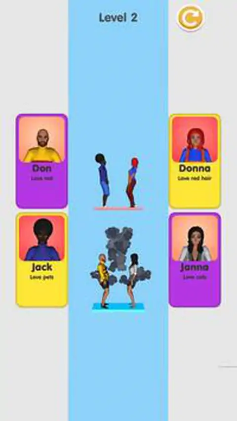 您想在享受乐趣的同时挑战自己的技能吗? 尝试用你的智慧解决每个关卡 - 你需要运用你的直觉并仔细思考!你有责任做出最好的决定来帮助人们相互匹配。你的成功完全取决于你的选择。 游戏特色: 这么多关卡可以玩 超级流畅、有趣且令人上瘾的游戏 打发空闲时间的好机会 明亮的 3D 图形 立即下载 Match people 3D 并开始您的虚拟侦探冒险!你准备好挑战了吗?机会来了