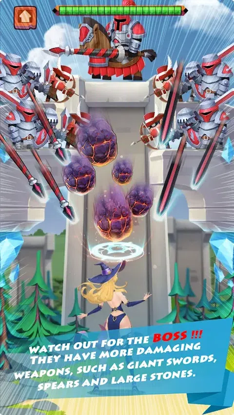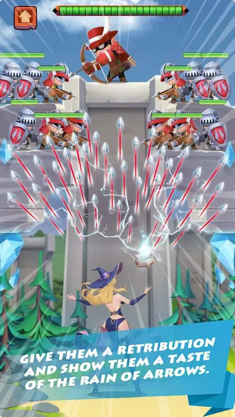 控制女巫,防御敌人的雨箭,给予他们报应,并让他们体验箭雨的滋味。 当心老板。他们拥有更具破坏性的武器,例如巨剑、长矛和大石头。 充分利用你的魔法阵型来阻挡敌人的攻击。不断升级以解锁更多技能,使您的角色更强大。 超过10种魔法技能可用于轰炸敌人并摧毁一切。祝你好运