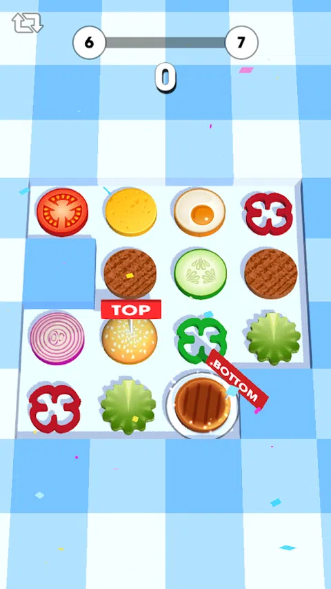 计划和滑动,移动食材,制作汉堡。吃吧!汉堡包!