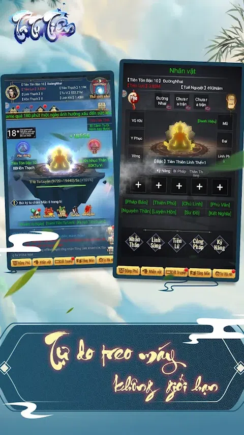 -无常之路,400年前,光环枯竭,恶魔氏族入侵,人类的命运终结了。整个Hoang Vien大陆成为了恶魔部落的时代…。,但是仍然有来自六路转信的和尚,为了破坏mazoku到Bong Lai的计划,以获得Nhan Vuong Chi Kiem和摧毁天之门段的恶魔皇帝,营救大陆上剩余的生物 -你是涂田的粉丝吗? 《 Ta Tu Tien》是一款高自由度的养脚游戏,风格易懂 建立自己的洞穴,感受飞行的乐趣