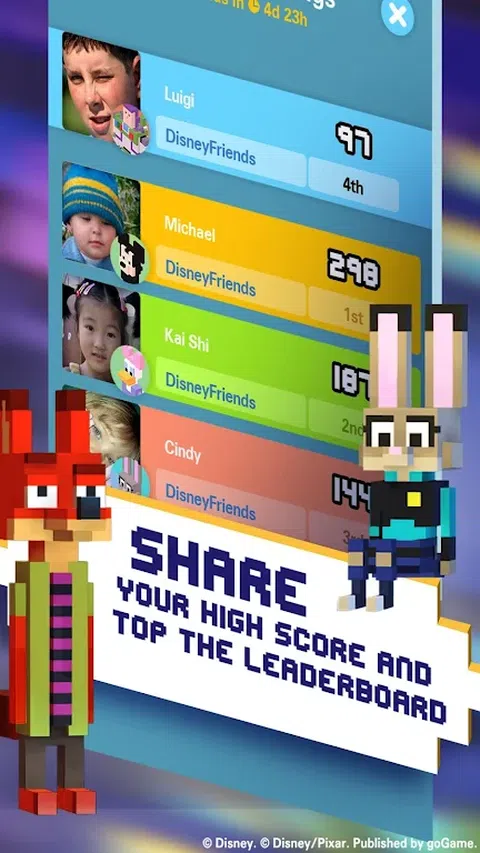 每个人都想过马路, 其中包含了来自Mickey & Friends, Toy Story, Finding Dory, Big Hero 6, Inside Out, The Incredibles, Beauty and the Beast, Pirates of the Caribbean, Cars和其他更多系列,580+你最爱的Disney角色。 在无尽的长廊中借由跳跃, 闪躲, 滑行通过你路上的疯狂障碍物, 看你在不死的情况下能跑多远。 此外, 体验只有在东南亚版本才有的实时多人模式。与朋友们比赛谁才是第一名的金币收集者, 或挑战排名前百的玩家们! o 收集超过580个Disney 和 Pixar的角色,包括Mickey, Donald, Dory, Buzz Lightyear, Mr Incredible, Rapunzel, Mufasa, Sadness, Wreck-It Ralph, Princess Vanellope, Moana, Lightning McQueen, 和其他更多你喜爱的角色 (和许多有趣的惊喜)! o 探索八位化的Thunder Hollow Speedway (Cars), Lalotai (Moana), Al's Toy Barn, the Pride Lands of Africa, the Haunted Mansion, San Fransokyo, 以及符合每个世界主题,的大师级挑战, 像暴风雪, 角马狂奔, 掉落的桶子等等挑战。 o 完成每日和周末任务来获得金币, 限定角色的像素或印章。 o 分享你的高分并称霸排名, 只要连结Facebook便可和好友们竞争排名! 本游戏由Hipster Whale, Disney and goGame. 为您呈献 - 游戏将会要求以下权限: • READ_EXTERNAL_STORAGE • WRITE_EXTERNAL_STORAGE 以便将溅水图像储存在使用者装置中。 使用者若未提供权限,分享功能将无法使用