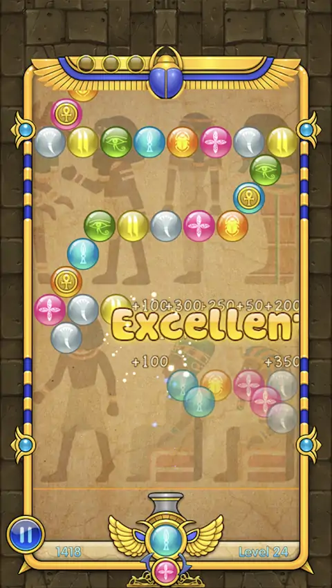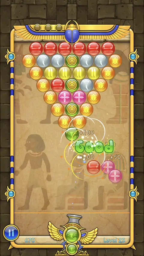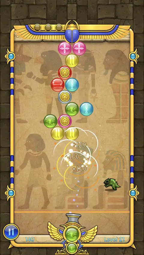 埃及风格的泡泡龙! 用手指触摸屏幕发射泡泡球,当射击中三个或更多同颜色的泡泡时,泡泡将。 特点: 1. 三种游戏模式:解谜模式,经典模式和街机模式 2. 解谜模式含有4个关卡包(400关卡) 3. 经典模式含有4个关卡包(400关卡) 4. 街机模式包含多关效果球并且游戏不会结束可玩限玩下去 5