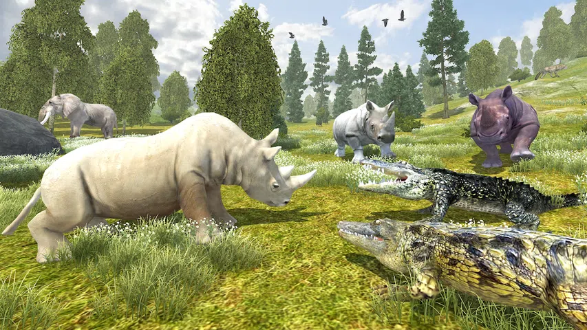 ✦ 极端的野生生活模式。 ✦ 控制台质量的 3D 图形、动画和效果。 ✦ 巨大的 3D 森林地图。 ✦ 许多动物敌人 - 鬣狗、犀牛、狮子、熊、野猪、水牛、大象、鹿、大猩猩、狼、猎豹、鳄鱼、家畜等等