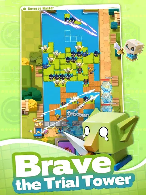 【方块世界】 一个充斥着碰撞与消除的魔法世界。 方块世界中有着各种各样的生物,它们组成大大小小的王国,对不定时从天 而降的不规则方块接连成行进行消除,从而转化为能量重归天地,这是方块世界的基本规则。 【方块战争】 每个大大小小的王国只有一个可以登上王座,成为最强者。激流峡谷便成为了方块世界中所有王国之间的战场,争夺方块战场中的胜利机会,以此登上最强王座。 战场规则十分简单: 战场双方王国,将搭载士兵的方块顺流而下,通过河流缓速改变方块形状,控制下落,利用成行消除的世界规则消除方块,将士兵下落到战场中进行战斗,攻占对方城堡者则为之获胜, 还能利用魔法掌控局势,影响战局最终结果。 如何掌握更合理的布阵、更快速高效的消除方块、更有效的利用魔法,则成为取胜的关键!夺取更多胜利奖杯,登上最强王座,成为方块世界最强的王国吧