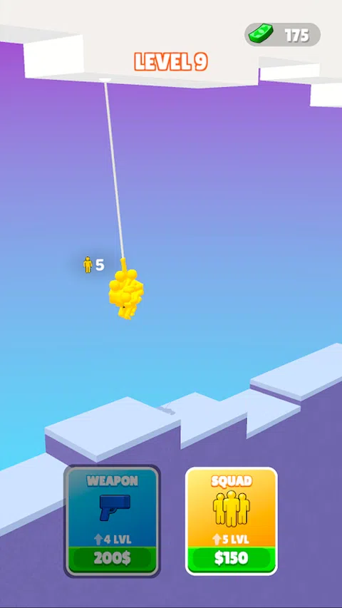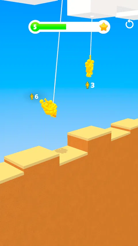 通过在绳索上移动来收集人群,并在终点线击败成群的敌人