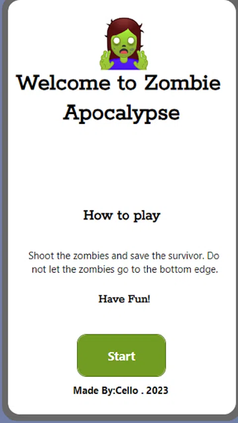 这个应用程序是关于从僵尸攻击中拯救公民。您需要使用左右按钮移动士兵并射击僵尸,不要让僵尸到达底部边缘,否则您会失败