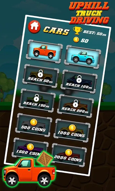 上坡卡车驾驶是的令人上瘾和有趣的基于物理的安卓驾驶游戏之一。 这个赛车游戏挑战您解锁许多不同的汽车,尽可能驾驶以收集更多硬币并使用硬币来解锁您的汽车。 立即加入上坡卡车驾驶游戏