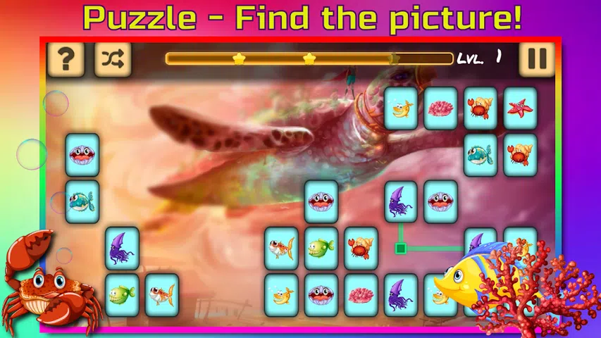 潜入海底世界,发现都是一样的鱼! 一个精彩的益智游戏,为所有年接两个相同的图片。美丽的休闲游戏以海洋为主题