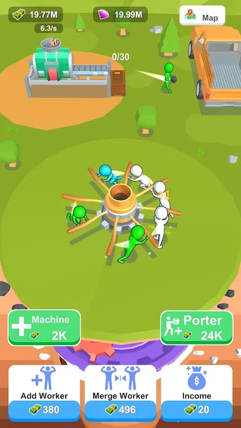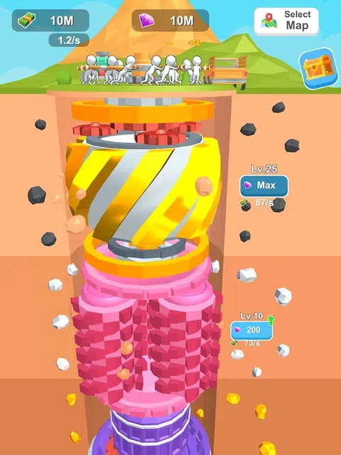 隆重推出“Drill and Thrive” - 一款迷人的闲置游戏,您可以在其中进行地下采矿冒险!控制由地表工人操作的旋转杆,同时强大的钻机深入深处寻找珍贵的矿物。每一层都会带来具有不同盈利能力的独特矿石,让您有机会积累财富。 在地表合并相同的工人,以创造更先进、更高效的工人。结合他们的技能和专业知识,最大限度地提高生产力,开启繁荣的新视野。升级您的钻头,以更快、更深入地挖掘,发现稀有宝藏并增加您的收入。 在制定战略和优化资源时,体验管理蓬勃发展的采矿作业的快感。扩展您的帝国,解锁新工具,征服具有挑战性的里程碑,成为终极矿业大亨。 准备好在这个令人上瘾且回报丰厚的闲置游戏中钻探、合并并蓬勃发展。立即开始您的地下之旅