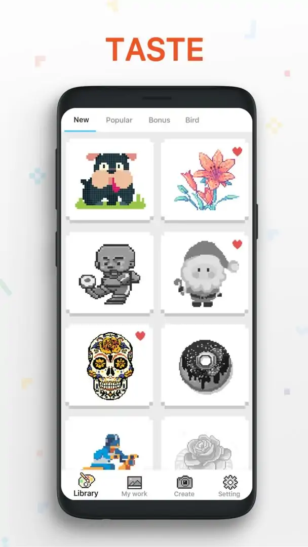 欢迎使用有趣而简单,它可以帮助您摆脱生活的压力。这里有许多独特的耐压图片,让您轻松享受像素着色的艺术。在这里,您可以为成年人感到前所未有的放松,在这里您可以享受喧嚣的内心平静,并享受乐趣和放松像素着色。对于儿童来说,这是加强他们对数字和颜色的认识,并增强耐心和专注力的好方法。您还可以在此处创建自己的着色作品,释放内部艺术家并与家人和朋友分享。特点:提供各种类别的多种着色页,您可以为动物,游戏,食物,花朵,鸟类,自然,时尚,建筑等可以随意调整画布大小长按以连续上色,使着色和绘画更加轻松。一系列辅助工具可以帮助您更好地完成作品您可以共享您的作品通过Instagram,facebook等您可以将手机图库中的照片转换为像素艺术。因此,让我们开始像素艺术的旅程。