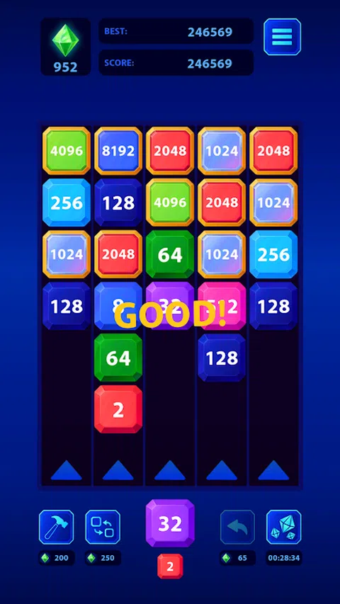 您是热门游戏 2048 的高手吗?准备在这个修改后的版本中测试您的技能,它将经典拼图挑战提升到新的高度。在这个独特的改编游戏中,您不仅可以操纵游戏面板上的数字,还可以进行战略射击。达到神秘的 2048 数字成为一个真正艰巨的拼图挑战。您能爬得更高以创造记录吗? 您的目标很简单,但具有挑战性:合并方块数字以增加其价值,并尽可能长时间地保持游戏环境的清洁。这是一个微妙的平衡行为,需要精确的决策和战略思维。每次成功合并后,您都离目标更近了,但要当心面板混乱,因为这可能会导致死胡同。您可以实现的最高合并是多少?是时候找出答案了! 游戏特色: ★ 无尽的游戏 - 在这里,挑战无止境!测试你的智慧和耐力,瞄准破纪录的方块合并,看看你可以让游戏持续多久,超越 2048 个方块! ★ 自动进度保存功能可助您一臂之力 - 随时返回到您的益智游戏,从上次中断的地方继续。再也不用担心失去辛苦得来的分数。 ★ 三个助推器可供您使用,提供宝贵的帮助,帮助您克服在追求最高合并分数的过程中遇到的困难和障碍。战略性地使用它们,以最大限度地提高您的进步并击败您的个人最佳成绩。 ★ 跟踪您的游戏统计数据,以监控您的进度,见证您的进步,并挑战自己以达到新的里程碑。 ★ 每日奖励将确保每天都带来惊喜和额外的分数收入,以继续您的游戏会话。 在这个令人上瘾的数学益智游戏中,如何玩才能获得最高分? - 点击所需的列以射击数字方块 - 连接相同的方块,将它们合并为更高的数字,逐步向上移动数字阶梯。 - 组合两个以上的数字方块,以获得更高的分数乘数,这是建立令人印象深刻的记录的好方法! - 别忘了,2048 区块不是结束,更像是开始! 您喜欢下雨天的 2048 风格游戏、数学拼图和其他休闲游戏吗?请务必查看此合并游戏,或留意我们的其他方块游戏