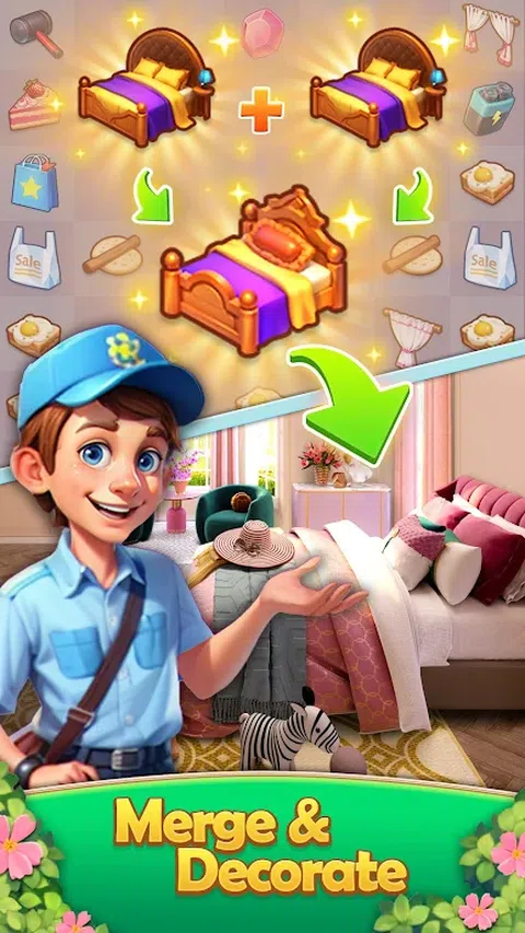 当您踏入“合并房间景观:装饰融合”的门槛时,您就进入了一个实现每个设计师梦想的世界。在这个游戏中,你是历史上最杰出的人!你的任务是通过巧妙地合并不同的物品来完成各种订单任务,将客户的房间变成全新的东西。 这不是典型的合并游戏。合并房间景观:装饰融合融合了合并拼图和房间装饰游戏的元素,营造出清新而富有创意的游戏体验。您拥有完全的设计自由,可以按照自己喜欢的方式装饰、布置和翻新房间。 当您与客户会面并接受他们的订单时,您将享受创意盛宴。你将使用各种工具,探索新的装饰元素,从一个空的大厅从头开始,逐步建造一座散发着个性和温暖的房子。无论是翻新旧房子还是从头开始,您都可以释放自己的设计天赋,使每个房间都独具魅力。 因此,准备好在“合并房间景观:装饰融合”中展示您的专业眼光,释放您的创造力,并炫耀您的设计技巧!这是您成为历史上最伟大设计师的时刻,也是您不容错过的机会。开始您的设计之旅,将每个房间变成艺术品