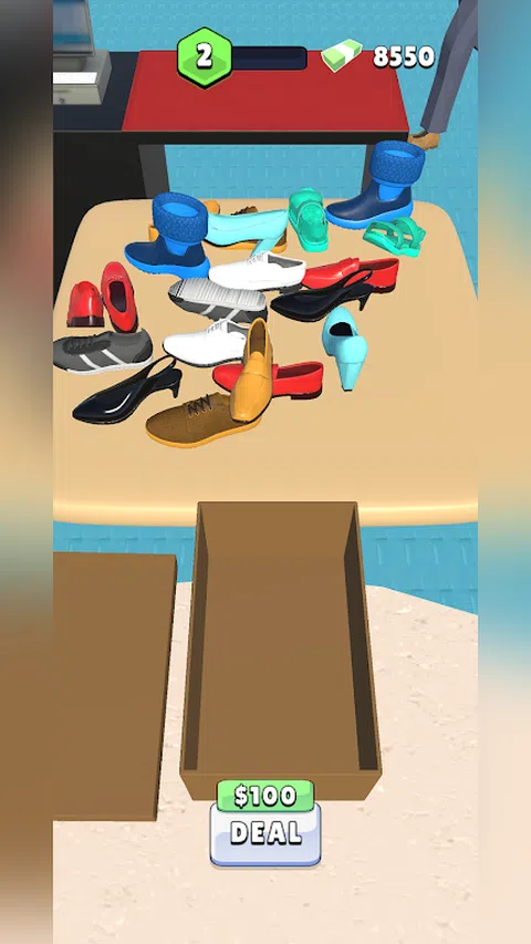 首先,使用交易按钮来购买鞋子。 找一双鞋子,把它们装在一个盒子里,然后卖给顾客。 使用销售所得的钱购买更多鞋子,使您的商店越来越大