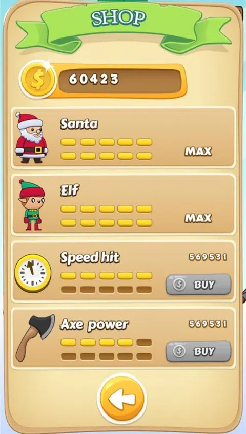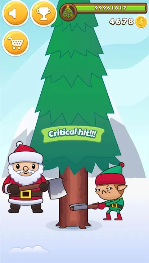 加入圣诞老人,前往童话森林。帮助圣诞老人修剪圣诞树。通过点击获取金钱并解锁小精灵。为圣诞老人和他的小助手购买升级。添加斧头的速度和力量。尝试获得所有成就奖励。玩得开心,享受游戏