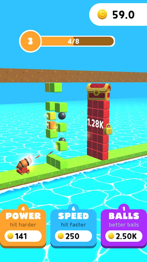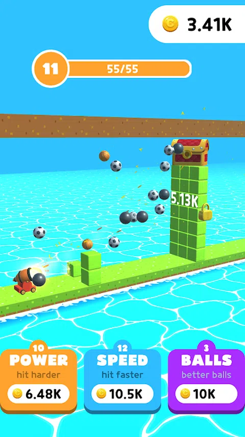 点击以使用大炮更快地射击! 解锁更好的球! 攻击更快