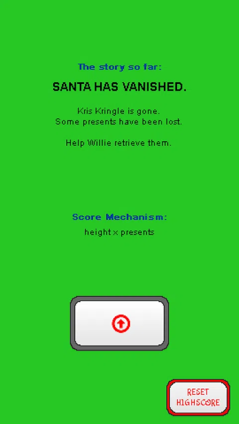 Willie Christmas是一款具有挑战性的圣诞主题平台游戏。它非常有趣且易于玩,但很难掌握。 圣诞老人失踪了,更糟糕的是—许多礼物丢失了。威利(穿着圣诞老人服装)被指派去找回丢失的礼物并恢复圣诞节的秩序。 他是多么成功。你决定。从平台跳到平台,躲避许多障碍。看看能拿到多高的礼物,能收集多少礼物。 您的分数由身高乘以礼物决定