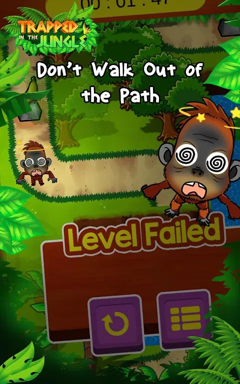 当奇奇从睡梦中醒来时,他找不到妈妈了。琪琪必须进入充满陷阱的丛林寻找母亲,你能帮助琪琪找到解救母亲的方法吗? 游戏玩法: - 触摸你的屏幕并按照路径。不要偏离路径或释放你的触摸。 - 找到找到妈妈的最快路线。 - 熊陷阱可以快速关闭陷阱,所以当你通过它时要小心。 - 一座烂桥会让你掉进河里。 - 有时您必须使用树木原木作为桥梁,而且它很窄。 - 检查点是滑动屏幕的方法。 - 可以通过按下隐藏按钮打开笼子。 - 杰克有枪,确保你躲过子弹