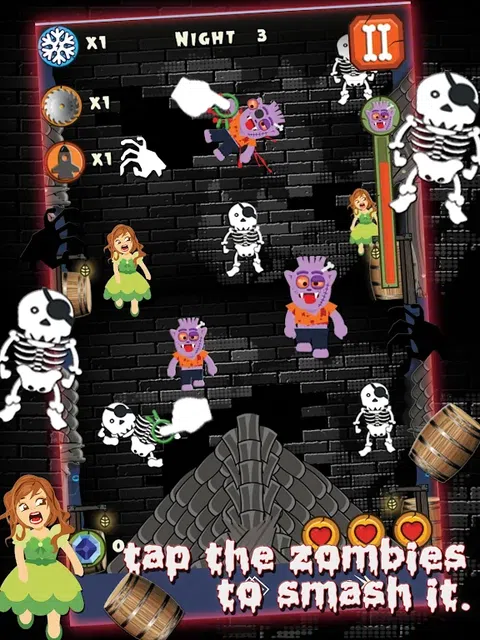 Clash OF Hungry Zombies 最有趣和挑战性的游戏。 准备好保卫你的家园,因为一群僵尸即将入侵你的城镇! 那些不死生物又回来了,要让它们保持无脑状态就靠你了。 用手指轻敲僵尸,在它们破门而入之前粉碎并消灭它们。 怎么玩: - 只需触摸僵尸即可杀死它们 - 点击僵尸粉碎它。 使用 3 种特殊能力 - 可以帮助您提升水平。 *fozen road* (僵尸移动很慢) *圆锯*(杀死触及锯的僵尸) *大炮射击*(杀死区域内所有敌人的射击) 杀死僵尸你可以获得蓝色水晶。 在关卡结束时,您将获得红色水晶。 取决于赚取的蓝色水晶。 点击公主或错过 3 个僵尸游戏将结束。 游戏特色: - 特定的图形设计和动画 - 4 种完全可怕的敌人僵尸品种 - 充满寒意与刺激的黑暗冒险,与不死族正面交锋! - 惊人的视觉效果和身临其境的 CD 品质音频 - 随时玩激烈的僵尸爆破动作游戏! 立即下载并畅玩这款免费的《饥饿僵尸大战》游戏