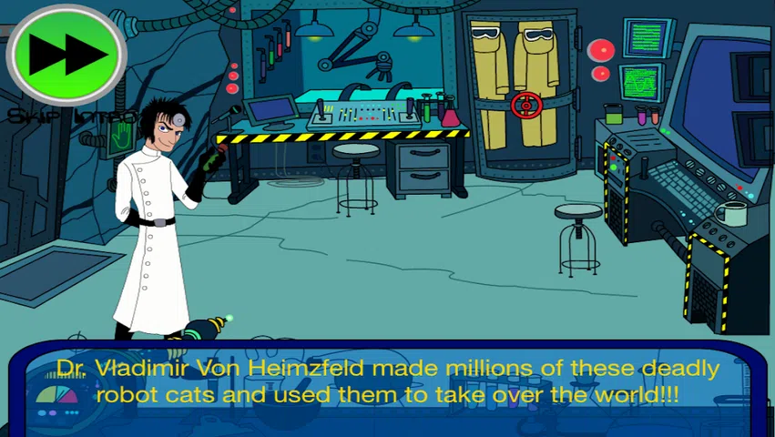 Robot Cat Invasion 是一款技巧、速度和生存的游戏,您可以在其中扮演 Spaghetti 博士,并从 Vladimir Von Heimzfeld 博士和他的机器猫中拯救世界