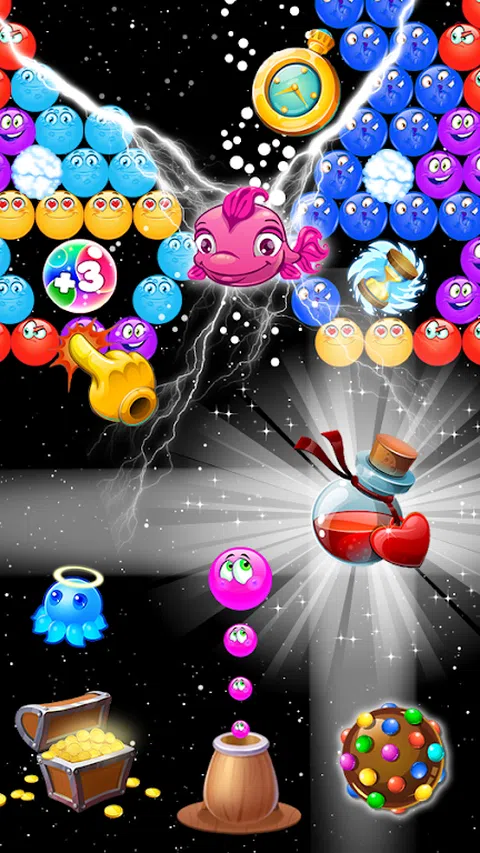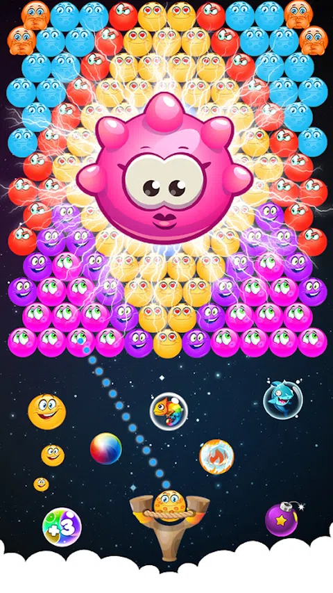 表情符号泡泡射击是经典泡泡射击街机游戏的克隆。 游戏的目标是通过将三个或更多颜色相近的 emoji 弹珠组成一组来清理比赛场地。当表情符号球到达屏幕的底线时,游戏结束。一枪摧毁的表情符号球越多,得分就越多。当比赛场地上没有剩余球时,一名球员获胜。 有 4 个难度级别:EasyRide、新手、专家、大师。两种计分模式:经典、狙击。经典模式建议没有时间或镜头限制的慢节奏游戏。狙击模式的目标是使用最少的射门清场。 有两种游戏模式: 策略 - 射门限制 街机 - 时间限制 Emoji Bubble Shooter 的目的是收集尽可能多的积分。要获得积分,您需要破坏彩色气泡。为了使这些表情符号气泡破裂,您需要排列/连接至少三个相同颜色的气泡。 在游戏窗口的底部中心,您会找到一个箭头。您可以通过手指触摸更改此箭头指向的方向。每次您对表情符号泡泡指尖时,您都会向箭头的当前方向发射一个新泡泡。 表情符号射击游戏是迄今为止的休闲游戏之一! 什么是新的! 我们以表情符号、情绪、贴纸的形式收集了很多泡泡,如下所示 - 幽灵泡泡 - 泡泡动物园 - 泡泡表情魅力 - 圣诞表情符号泡泡 - 3D 表情符号气泡 - 泡沫狂热 - 爱表情符号球 Bubble Shooter For Emoji 是一款非常直观的游戏,只需几秒钟即可上手。长时间的动力得到,高分是额外的动力助推器。总而言之:Bubble Shooter 是一款很棒的浏览器游戏