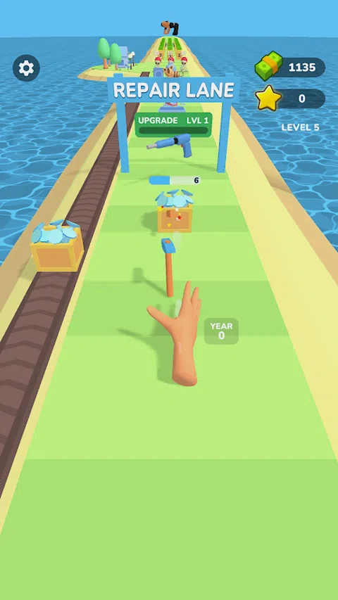 修理房屋!升级工具和钉枪! 投掷工具来组装钉箱。用钉子装上钉枪,然后前往修理巷,在那里您会遇到许多来自旧房子的破损物品。将它们全部修复以翻新整个房屋,并成为顶级维修大师