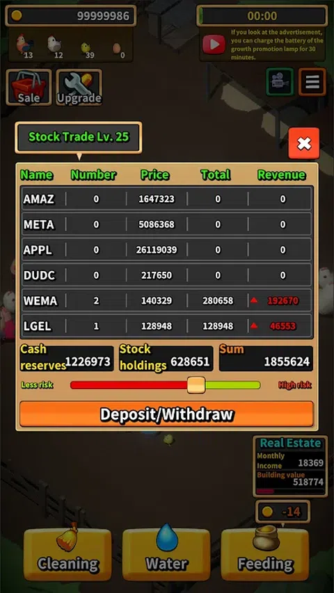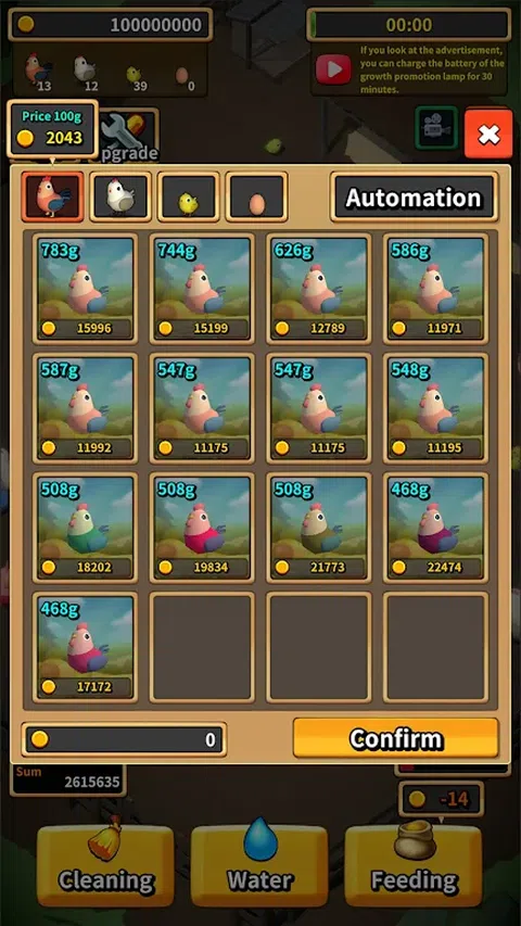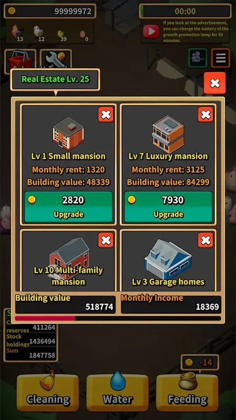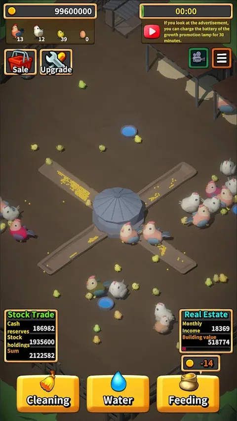 您是否有童年在农村养鸡的美好回忆? 在当今忙碌、忙碌和令人筋疲力尽的世界中,为什么不从现代的喧嚣中休息一下,养几只鸡呢? 您需要做的就是喂食,浇水并在它们之后清理干净,您可爱的小鸡就会茁壮成长。 您可以繁殖它们,产卵并饲养它们,在您知道之前,您的银行账户中就会有钱。 有了这笔钱,您可以体验在现实生活中无法体验的股票投资和房地产投资。 轻松的农村生活 在农村养鸡! 现在玩