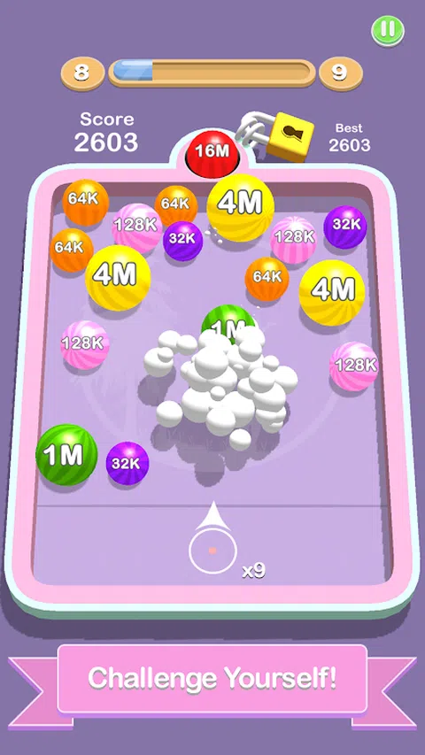 “合并台球 2048”是一款引人入胜的创新手机游戏,将 2048 的经典游戏玩法与刺激的台球策略相结合。这种独特的融合创造了令人兴奋和令人上瘾的游戏体验,可以让玩家保持数小时的参与度。 游戏玩法: 该游戏在矩形网格上进行,很像传统的 2048 游戏,但有所不同。台球不是数字图块,而是从 1 到 9 不等的数字,每个数字都用独特的颜色表示。您的目标是通过有策略地碰撞来合并球,类似于玩台球游戏。 主要特点: 1. *合并机制*:通过相互碰撞来合并相同数量和颜色的球。按照 2048 合并规则,合并两个 1 以创建一个 2,合并两个 2 以创建一个 4,依此类推。 2. *台球桌*:游戏以设计精美的虚拟台球桌为背景,具有逼真的物理效果和绿色毛毡表面。 3. *母球*:您可以控制一个母球,您可以瞄准并射击该母球以与其他球碰撞。精确控制对于获得高分至关重要。 4. *威力提升*:随着您的进步,获得威力提升和特殊能力,例如分裂球、改变球颜色或使球悬停一回合的能力。 5. *障碍物*:绕过障碍物,例如口袋、保险杠和其他可能阻碍或帮助您的合并策略的球。 6. *多人模式*:在实时多人比赛中挑战来自世界各地的朋友或玩家。使用您的技能来超越对手。 7. *成就和排行榜*:争夺全球排行榜的头把交椅,在达到新的里程碑时解锁众多成就。 8. *每日挑战*:通过需要创造性合并策略的每日挑战和谜题来测试您的技能。 9. *定制*:使用各种皮肤、主题和设计个性化您的母球和台球桌。 10. *引人入胜的配乐*:享受引人入胜的身临其境的配乐,与游戏相辅相成。 “Merge Pool 2048”将 2048 令人脑筋急转弯的满足感与台球的精确度和技巧相结合,提供新鲜而引人入胜的游戏体验,让您流连忘返。无论您是益智游戏、台球游戏还是两者的粉丝,该游戏都可以完美融合两个世界,带来无尽的娱乐。准备好在这个令人兴奋的手机游戏中合并,瞄准并得分,取得胜利