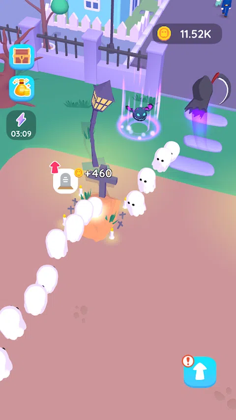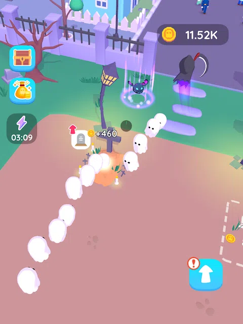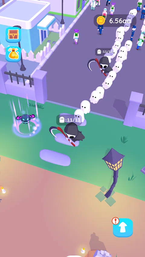 隆重推出“灵魂收割者” - 一款迷人的闲置游戏,您可以扮演死神的角色,在开阔的田野上收获灵魂。用你的镰刀快速挥动,你使人们翻滚,他们的灵魂升入空中。下落的尸体在消失前会徘徊 5 秒钟。灵魂在你身后尾随,形成一个庄严的游行。 引导灵魂走向墓地的大门,他们在那里有序地进入。当它们到达墓碑时,它们会消失,从而为您带来可观的收入。解锁更多坟墓以容纳更多灵魂。您解锁的坟墓越多,灵魂进入的速度就越快。每个解锁的坟墓都具有越来越复杂的设计,提供更高的利润。升级每个单独的墓碑,以最大限度地提高您的收入。 沉浸在“灵魂收割者”的空灵领域,培育繁荣的墓地,并从逝去的人那里积累财富