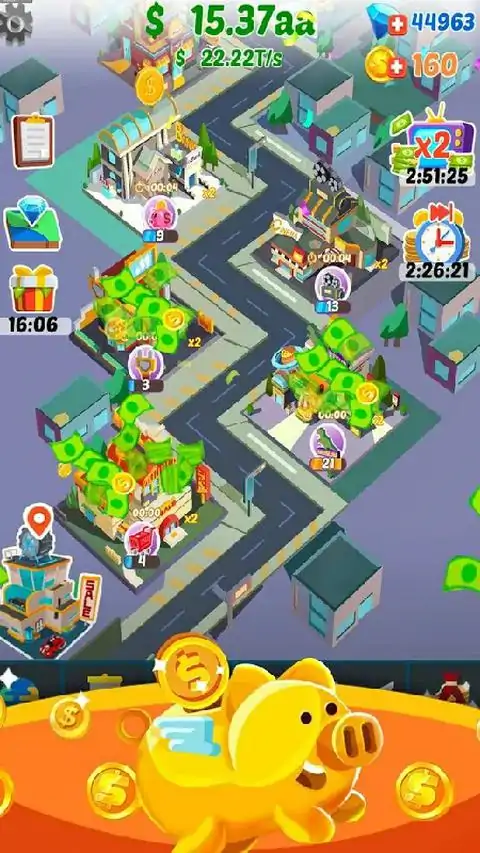 点击购买直接成功 游戏玩法轻松简单。只需要点击创建您的建筑物,然后保持点击,不断升级。当您积累足够的金币时,就可以成功的经理来帮助您赚钱了。 投资更多建筑物并解锁全新大陆。您的建筑物等级越高,您的资产也将更庞大。解锁所有建筑,拥有足够资金,构建您的专属商业帝国吧。 虽然,第一桶金是如此简单,但革命尚未成功,王者之路注定艰辛。不过, 别担心,一些人也在热衷于寻找他们的商业投资伙伴。积极的寻找他们,获取他们的投资吧。这对你而言,将是一个极富激情和挑战的决定,对吗? 如果您想用最短的时间证明您的商业实力,如果您有足够的信心扩充您的商业版图,那么,就请加入我们。