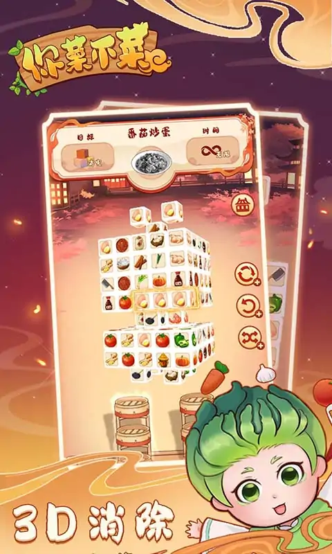 核心玩法: 《你菜不菜》是一款休闲减压3D美食消除小游戏。玩家可以选择休闲的3D消除玩法,也可以选择竞速类的厨艺大会。在关卡中,玩家可以选择不同的菜系,进行菜系的过关冲榜。过关时会获得相应的菜品和手艺值,在图鉴中,通过手艺值解锁并获得菜谱。 关卡介绍: 《你菜不菜》两个关卡分别为:休闲3D消除和竞速消除。3D消除让人休闲轻快,竞速消除又能让人感受到竞速的魅力。不同关卡不同心情,游戏节奏全由玩家操纵。 角色剧情: 在游戏里面,小趴是一个蔬菜拟人角色,从萌新小厨,一路通关获得各大菜系菜谱,一跃成为厨神。