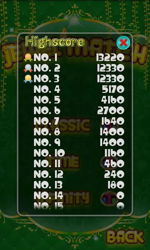 宝石对对碰是一款非常吸引人的三消类游戏。漂亮的画面,动听悦耳的音效。让人欲罢不能。内置本地分数排行榜功能,挑战你自己吧。 三种游戏模式: 1.经典模式:每一关消去一定数量的钻石。 2.时间模式:在有限的时间内消去钻石,每消去一个钻石,时间轴就会增加一定量的时间。 3.无限模式:玩法同经典模式,但过关之后不会重排钻石。 4.当没有可以消去的钻石或者时间耗尽时游戏结束。 我们尽可能做出的游戏出来,但是游戏中肯定还会有一些不尽如人意的地方.如果您有什么比较好的建议都可以告诉我们.您的5星或评论建议是对我们最大的支持.非常感谢