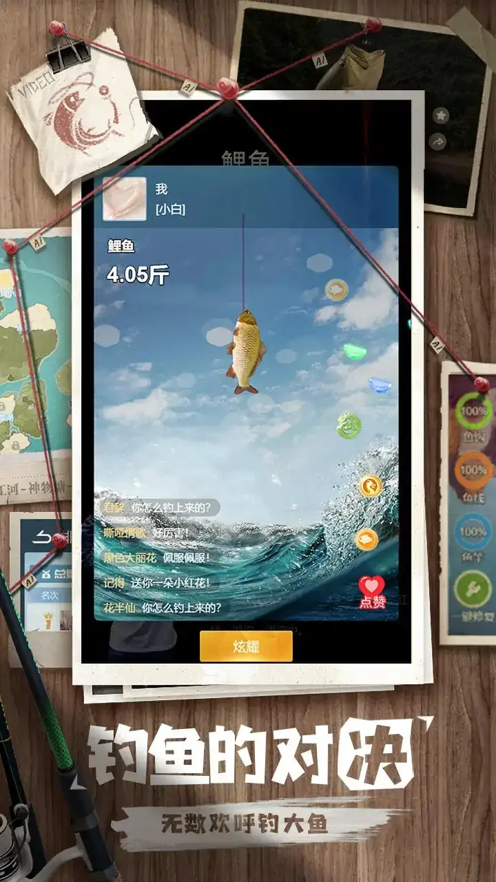 仿真钓鱼类游戏,真实体验足不出户就能享受钓鱼的快乐!游戏真实模拟各种钓鱼场景,随心所欲的切换,上百种不同种类的钓鱼工具随意切换来适应各中环境和鱼类的变化, 钓友还可以选择不同的钓鱼场景,如湖泊、河流、海洋等,进行钓鱼活动。在游戏中,钓友需要掌握钓鱼技巧,如投饵、收饵、控制鱼钩等。通过合理运用这些技巧,钓友可以提高钓鱼的成功率并获得更多的鱼类收获。游戏中的鱼类种类繁多,包括各种淡水鱼和海洋鱼,玩家可以根据个人喜好选择钓捕的目标。并且还为每位钓友精心准备了美女助理来为钓友的钓鱼生活添姿添彩。让你的钓鱼生活告别空军!